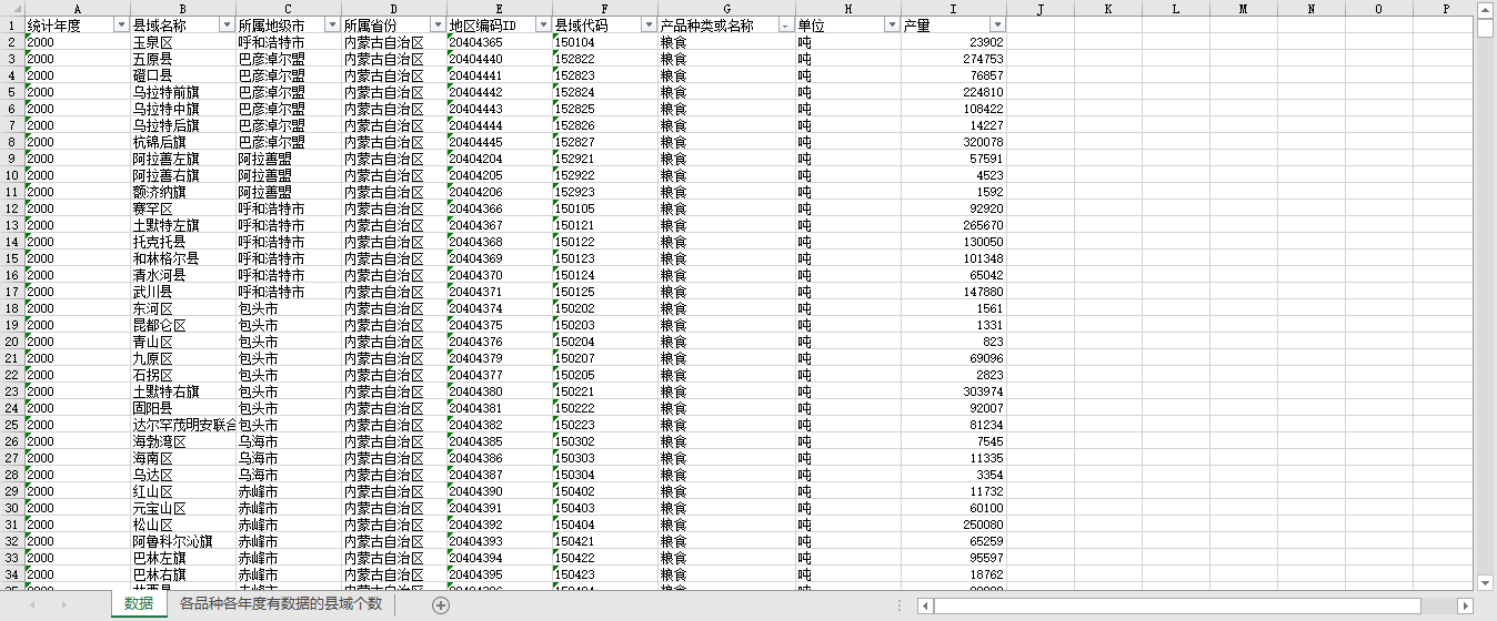 内蒙古自治区各区县域农产品产量2000-2021.xlsx