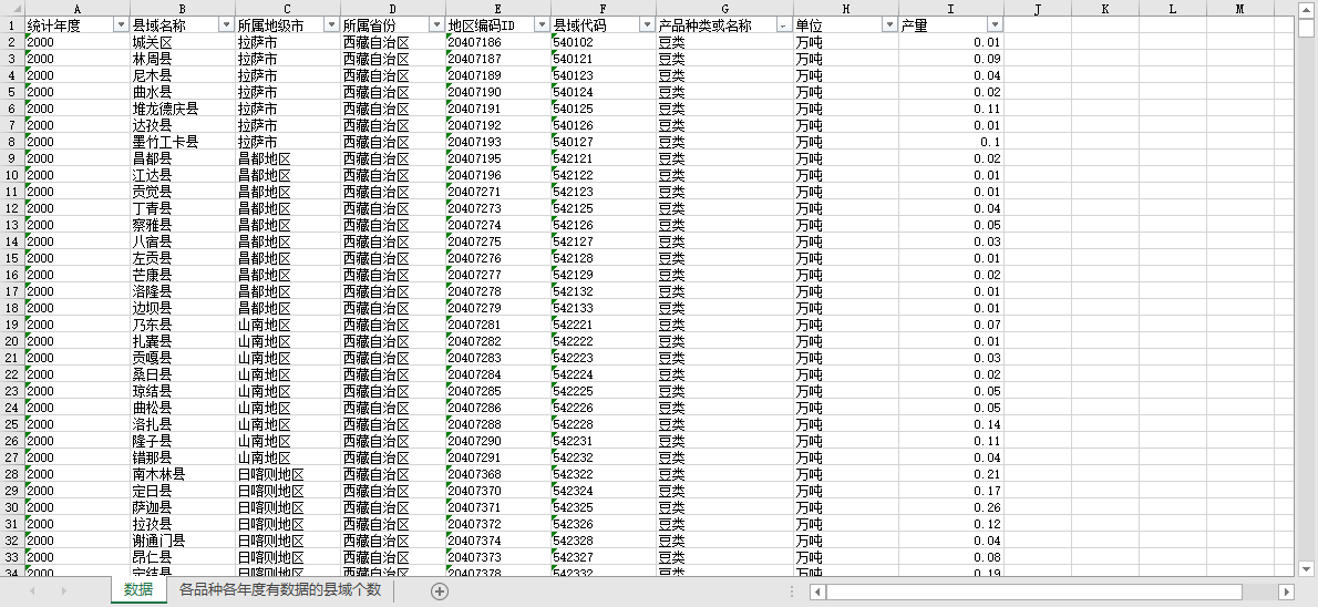 西藏自治区各区县域农产品产量2000-2021.xlsx
