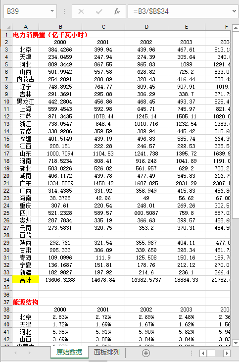 code year 省份 能源结构=每个省电力消费量/全国电力消费总量