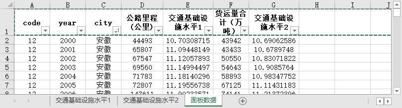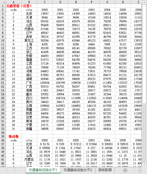code year city 公路里程(公里) 交通基础设施水平1 货运量合计(万吨) 交通基础设施水平2