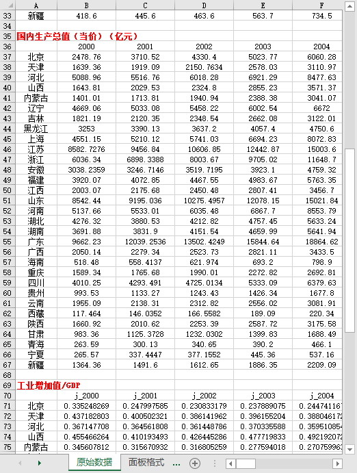 code year 省份 工业化水平=工业增加值/地区生产总值GDP