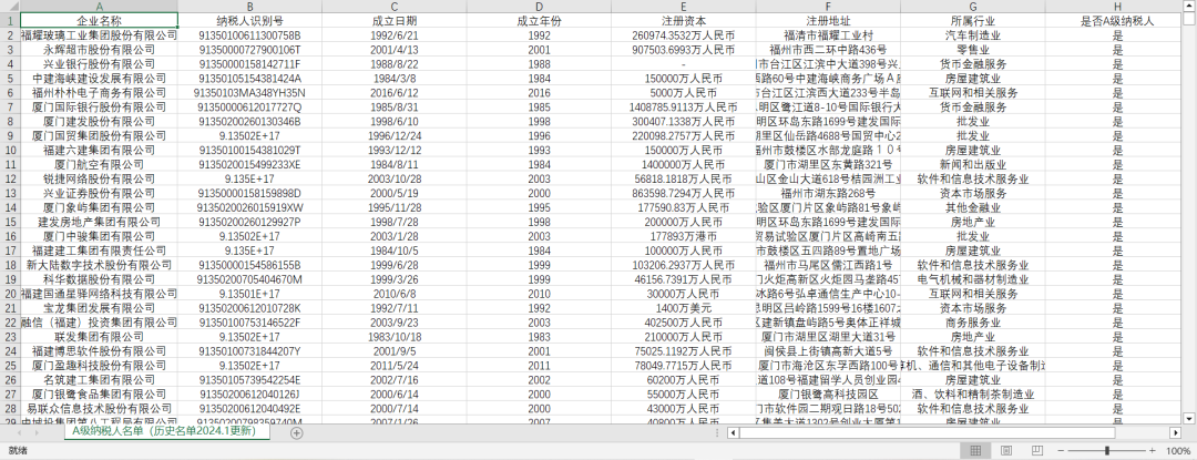 A级纳税人名单数据数据截至日期2023年12月31日