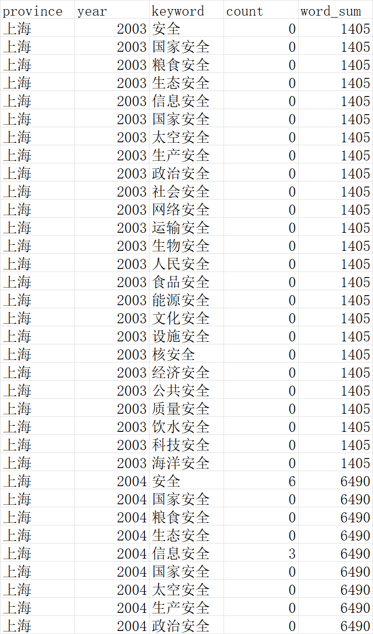 数据名称:省级政府国家安全建设注意力政策文本2001-2021年数据