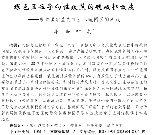 绿色区位导向性政策的碳减排效应——来自国家生态工业示范园区的实践