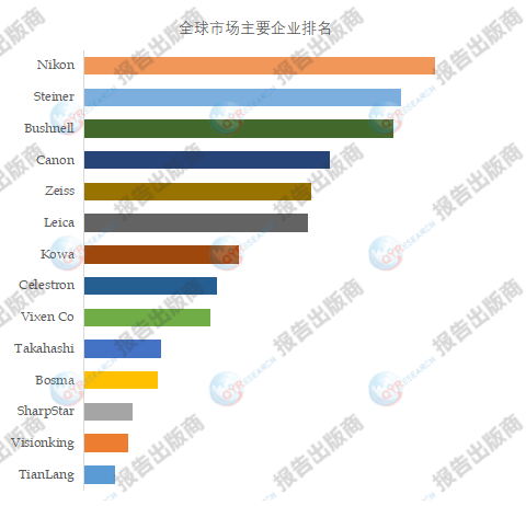 全球范围内望远镜生产商主要包括Nikon、Steiner、Bushnell、Canon、Zeiss、Leica、Kowa、Celestron、Vixen Co、Takahashi等。2021年,全球前五大厂商占有大约21.0%的市场份额。