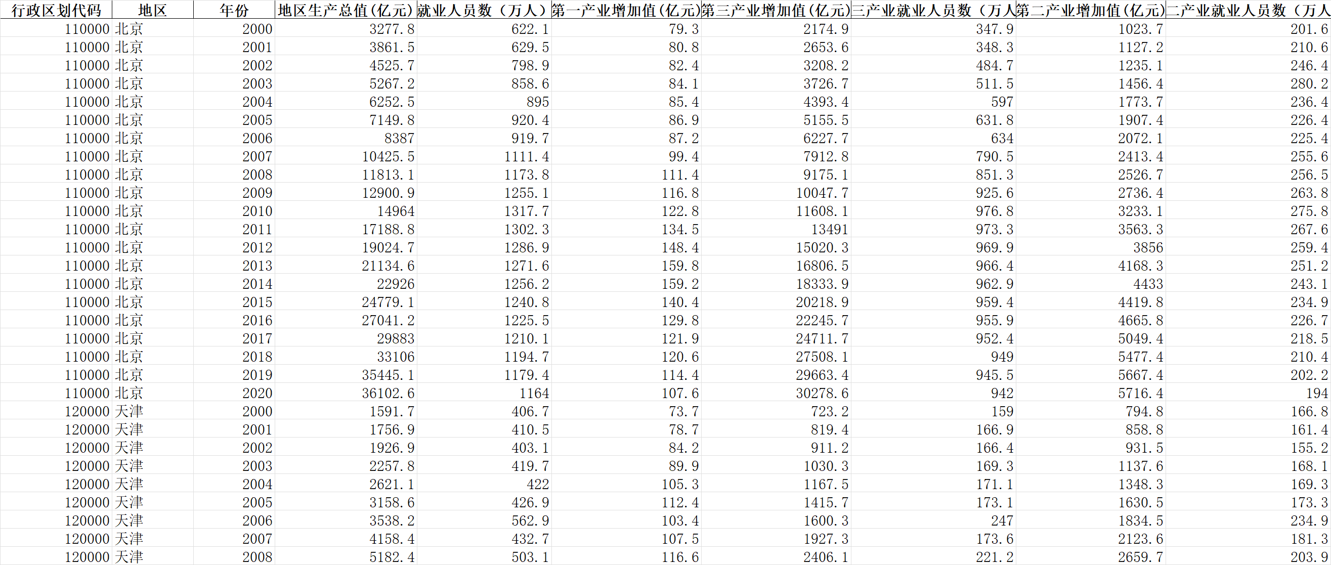 | 第三产业就业人员数(万人) | 中国统计年鉴 |