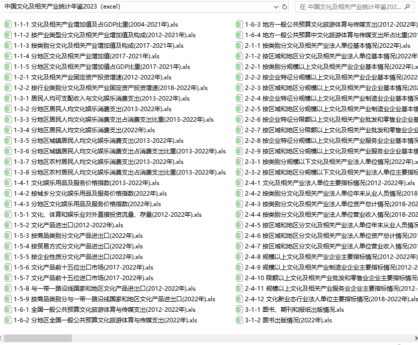中国文化及相关产业统计年鉴2023(excel格式)