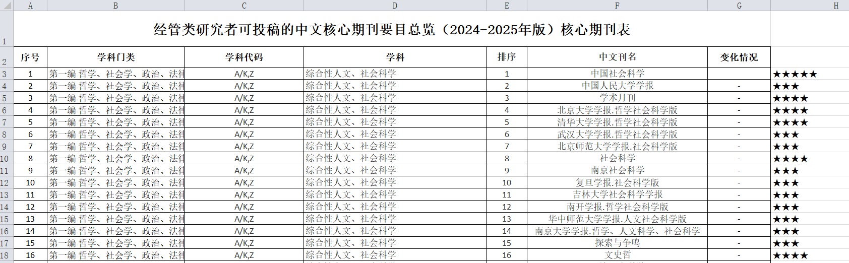 【科研必备】2024-2025年经管可投中文核心、北大核心汇总