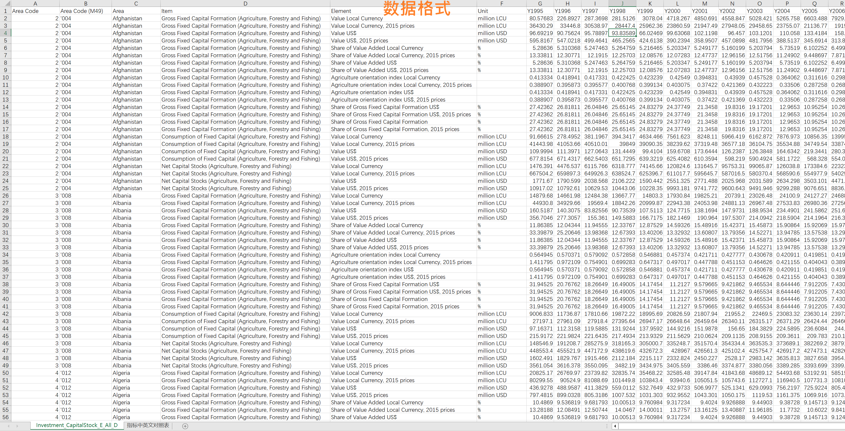 各国农业固定资本形成总额/农业固定资本消耗/农业净资本存量1995-2022年,包含