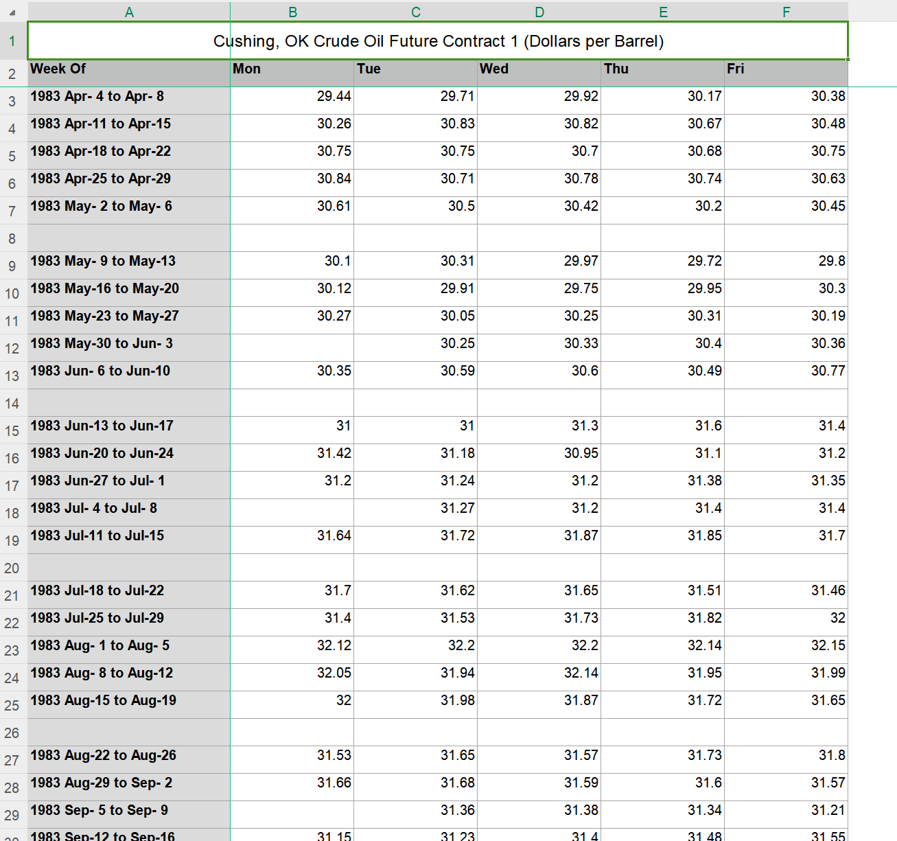• Cushing, OK Crude Oil Future Contract 1 (Dollars per Barrel)