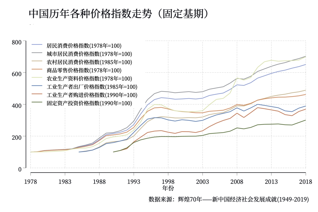 中国人口年龄结构变化与少儿老年抚养比变化中国历年各种价格指数走势(固定基期)