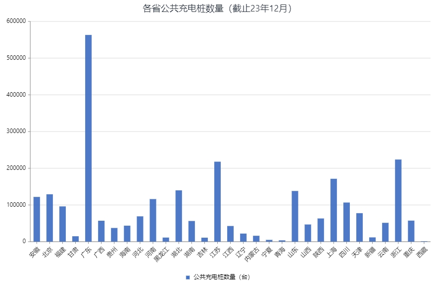 紧随其后的是江苏省和浙江省。这两个省份的新能源汽车产业发展也较为迅速,公共充电桩建设得到了大力推动。与广东省相比,江苏省和浙江省在公共充电桩建设方面稍显逊色,但两省在充电基础设施建设的投入力度上仍不容小觑。