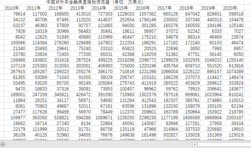 全国各省市对外直接投资流量数据2010-2020
