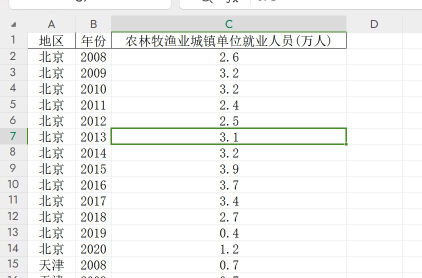 省级农林牧渔业城镇单位就业人员(万人)2008-2020