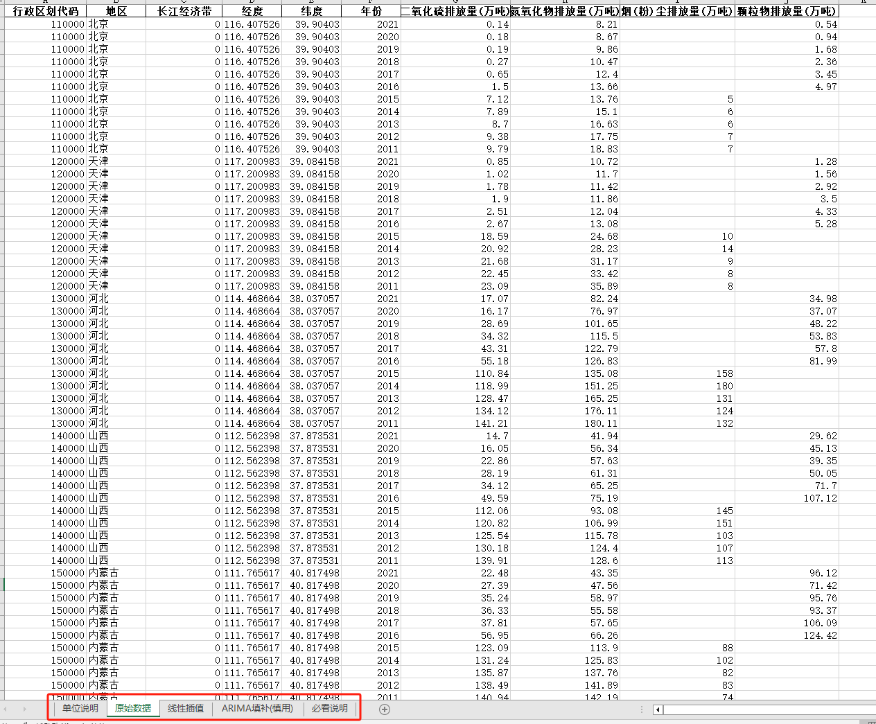 中国省级面板统计数据库(包含三个页签:原始数据、线性插值、ARIMA填补三个页签)