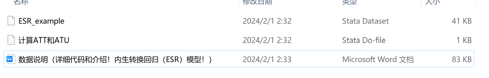 数据名称:内生转换回归模型(ESR)模型详细代码介绍