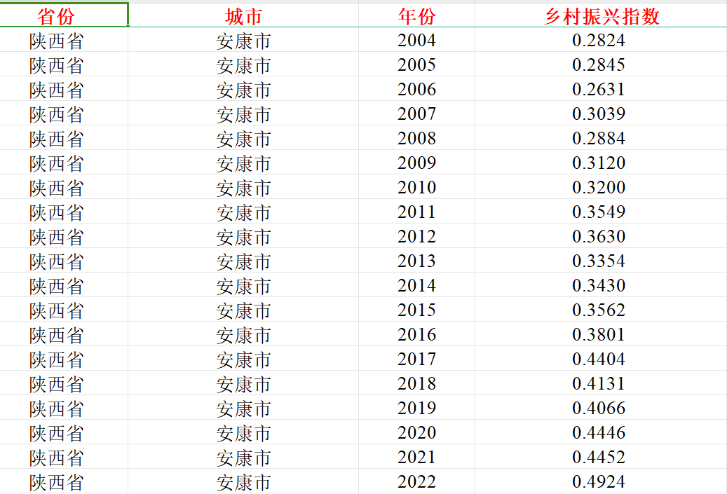 2000-2022年各城市乡村振兴指数数据,样本时间新,数据量大,基本可以满足毕业论文写作和科研需求。数据真实可靠,辛苦整理所得,分享给大家,希望对论坛各位同学毕业论文以及论文发表有所帮助。分享这份数据一是为了贴补家用,二是为了共享知识,希望诚心需要的同学下载使用,使用过程中如有任何疑问,可以交流心得。衷心祝愿论坛各位同仁毕业和发文顺利!整理的非常完整,十分规范,排版也很漂亮,节省您大量收集与整理时间,绝对物有所值!