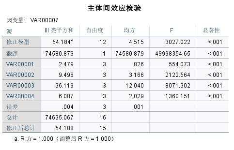 对正交试验结果进行主体效应检验,显著性都是0,R方为1,如何处理?