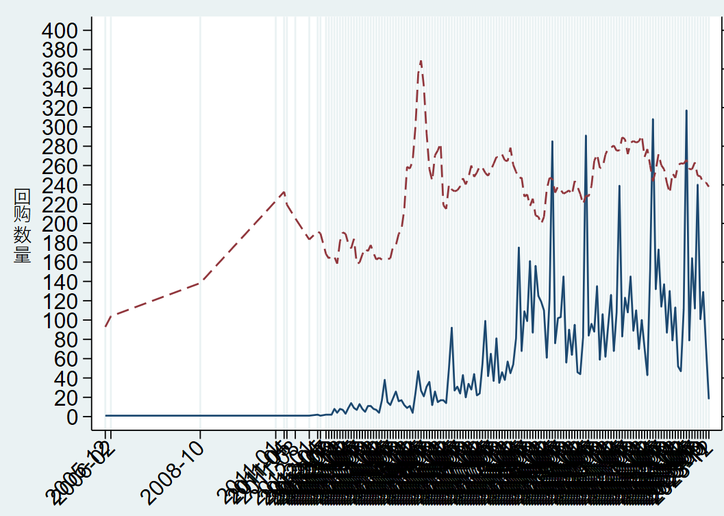 有没有友友知道横轴这个时间坐标怎么将间隔变成半年一显示吗,就是我不想所有的数据年月都显示出了,全挤在一起了这样