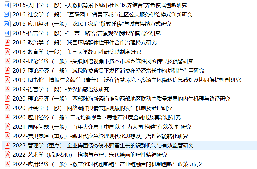 为助力各位学者申请国家社科基金项目,为大家整理了一份最新的10w+国家社科基金立项清单、近100份申请书范本、申请社科基金各阶段的研究报告,同时整理了多条社科基金申报经验分享内容,供大家参考。