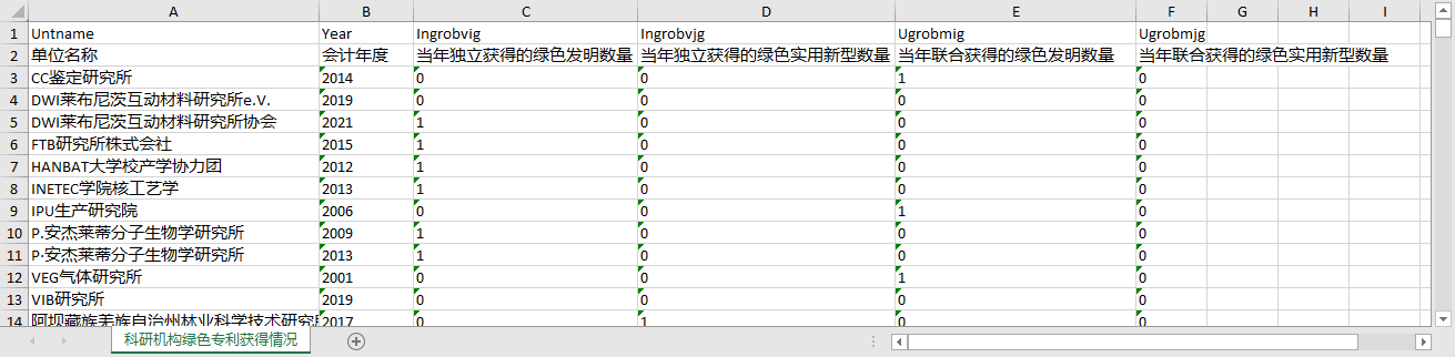 科研机构绿色专利获得情况:
