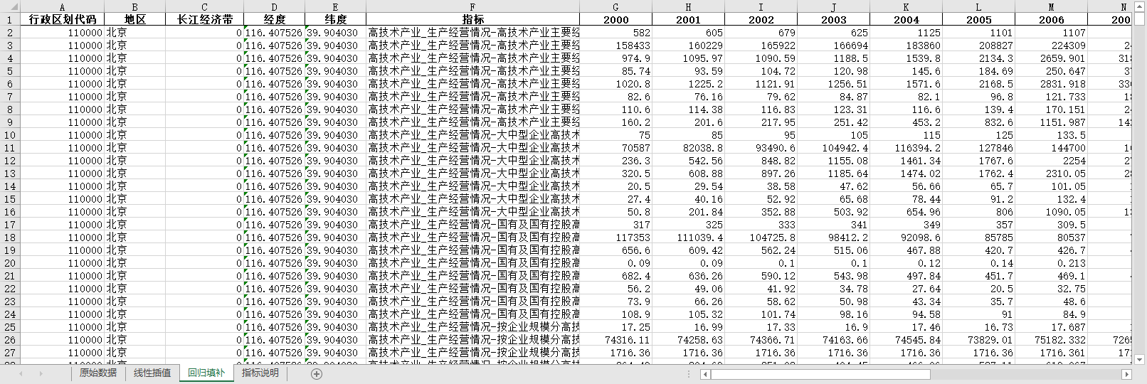 中国高技术统计年鉴2001-2022面板数据各省份682个统计指标真正无缺失值填补