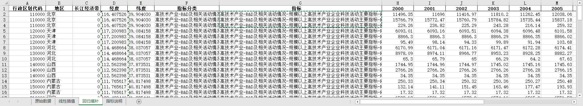 excel数据文件包原始数据(由于多年度指标不同存在缺失值)、线性插值、ARIMA填补三个版本,提供您参考使用。