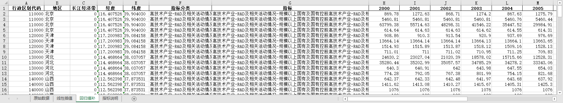 excel数据文件包原始数据(由于多年度指标不同存在缺失值)、线性插值、ARIMA填补三个版本,提供您参考使用。