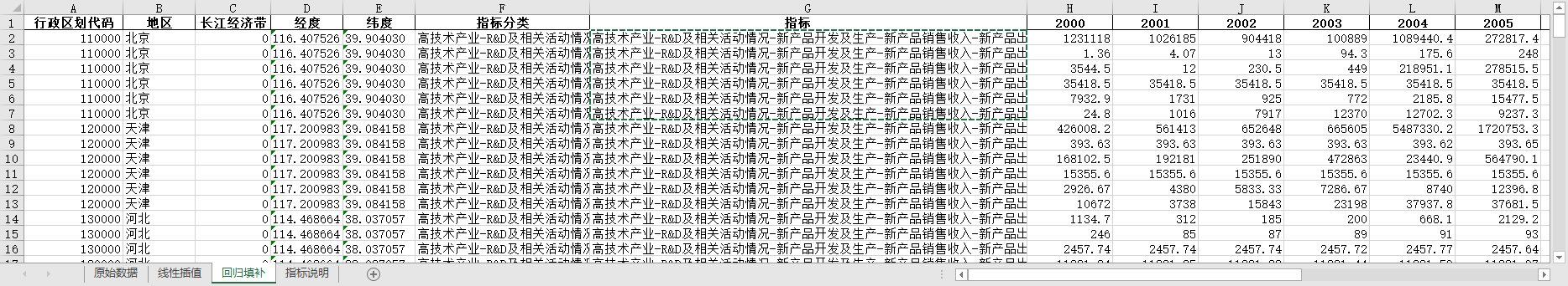 excel数据文件包原始数据(由于多年度指标不同存在缺失值)、线性插值、ARIMA填补三个版本,提供您参考使用。