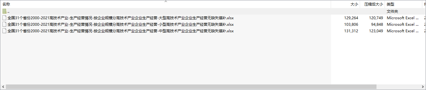 全国31个省份2021-2000高技术产业:分别是大型、中型、小型企业生产经营出口交货值、从.zip