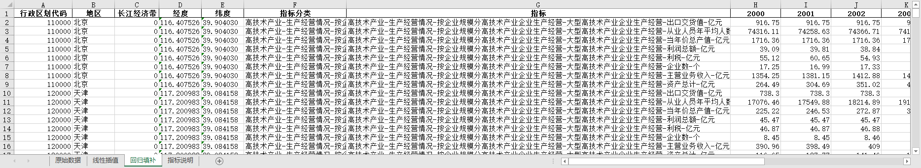 excel数据文件包原始数据(由于多年度指标不同存在缺失值)、线性插值、ARIMA填补三个版本,提供您参考使用。