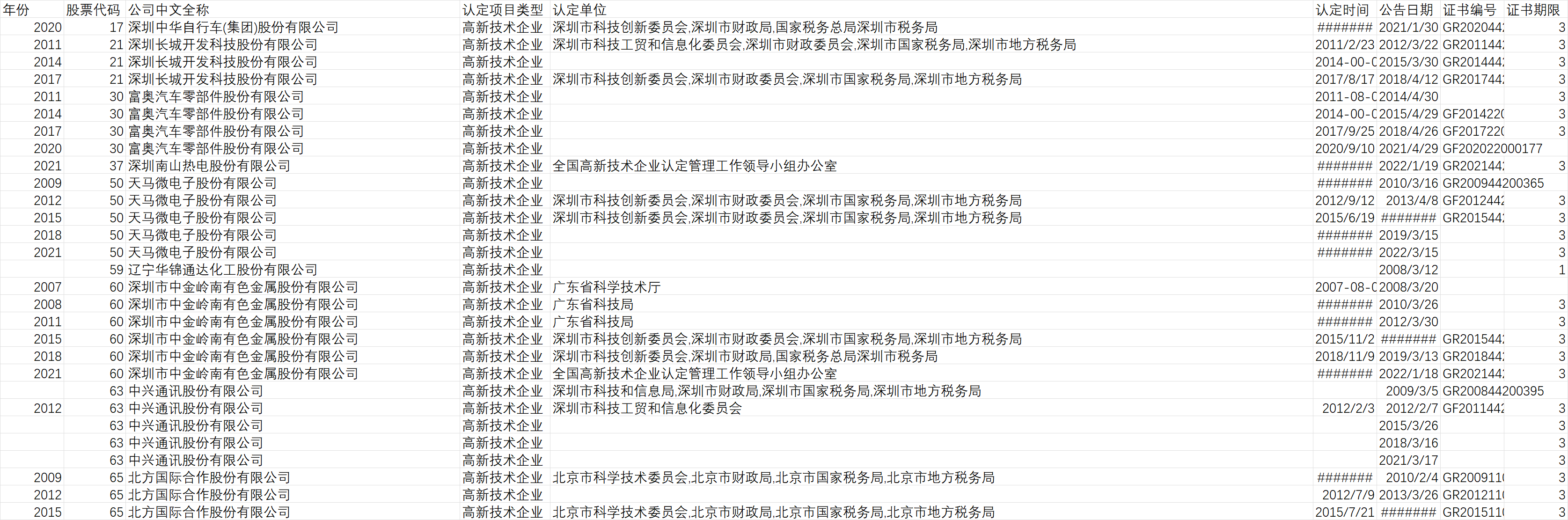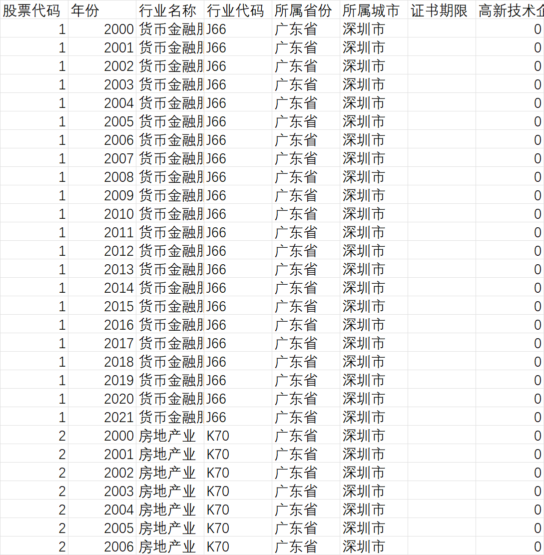 数据说明:包含高新技术企业原始数据、认定结果和处理代码