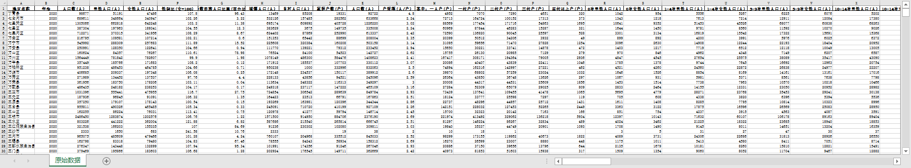 数据名称:第七次全国人口普查-整理版