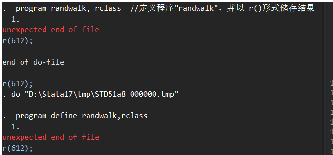 后来又试了program define randwalk,rclass ,但还是不行,这该怎么解决?