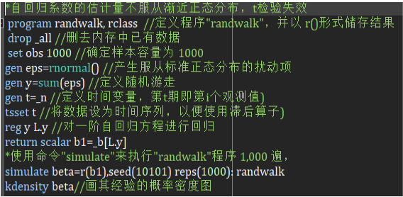 在学习单位根问题章节时,需要定义randwalk程序,格式是program randwalk,rclass