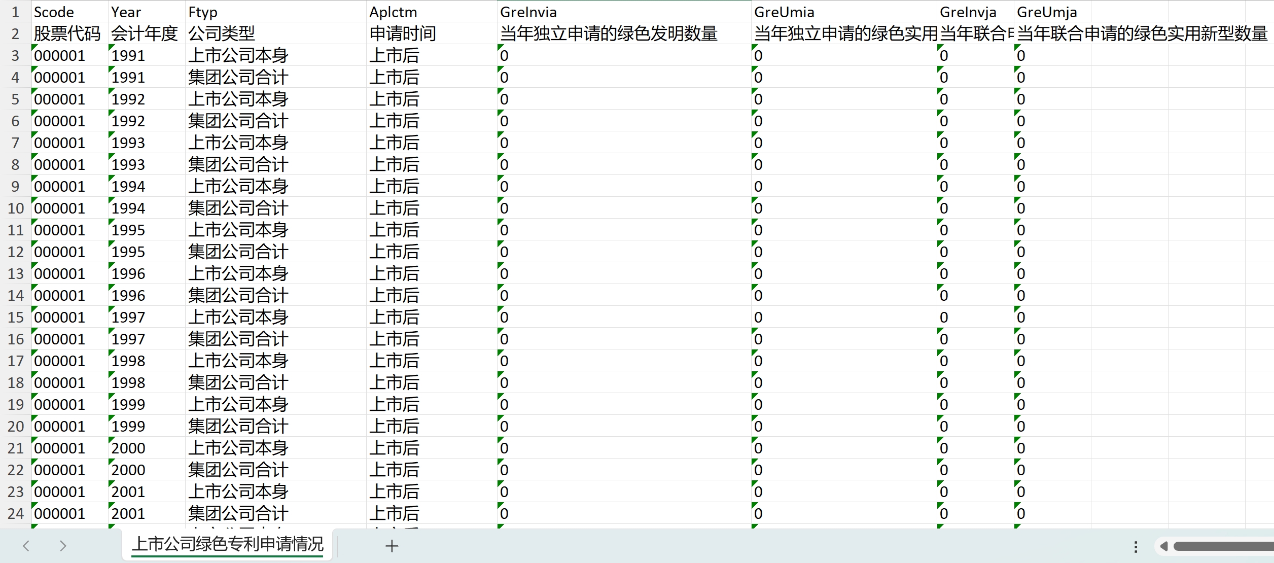 上市公司绿色专利申请情况.xlsx