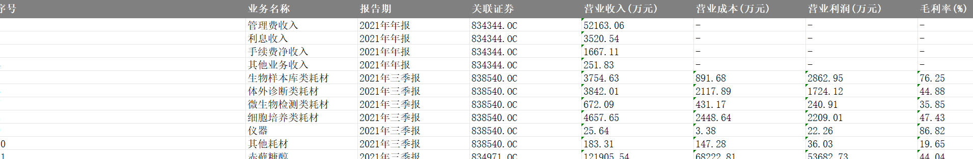 新三板的主营产品2021