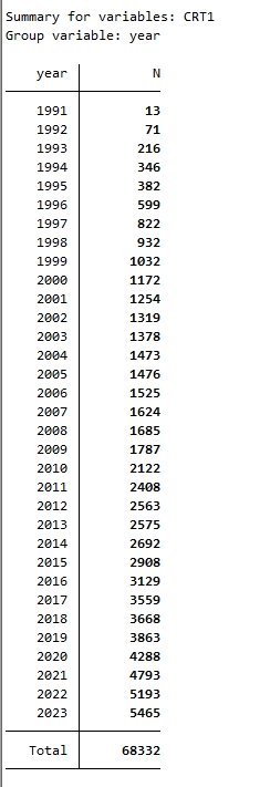 各年度样本量(CRT1):