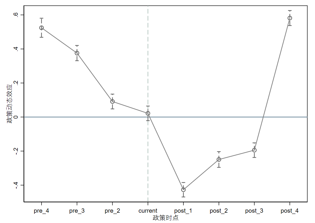 各位大佬,请问以一月为一期做平行趋势检验,为什么图会画成这样呢