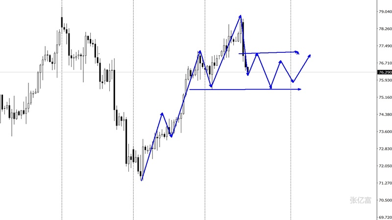 原油今日出现了震荡上涨走势,最低点触及77.194美元企稳震荡,最高点触及78.6一线徘徊。原油日线级别再次上涨,日线看油价还将继续上涨。四小时线,呈大区间震荡,先跌后涨在下方20日均线的支撑位止跌反弹再次回归上涨走势,近期从整体走势来看底部呈现逐步抬高动作,均线系统还没有形成多头排列主要受制于上方重压区的压制,附图指标MACD可以清楚的看到目前已经在零轴上方运行。综合以上分析,张亿富认为:原油延续看涨思路,下周操作上考虑回撤布局多单为主,高空为辅,上方关注79.3-80.5美元/桶阻力,下方关注77.5-76.5美元/桶支撑。今日原油实盘在77.5-77.2-77.6分批做多,追多,获利在78.6一线。
