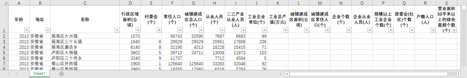 数据范围:包含本省各地市州区县的行政乡镇(及部分街道)的数据已经整理在一张excel表上了,便于分析对比和再利用。