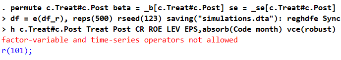 安慰剂检验出现factor-variable and time-series operators not allowed报错,要怎么修改呢
