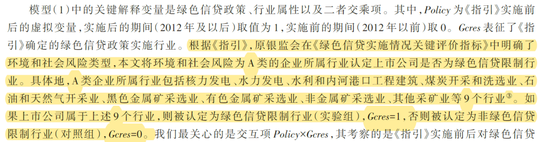 1、数据源名称:A股上市公司《绿色信贷指引》DID