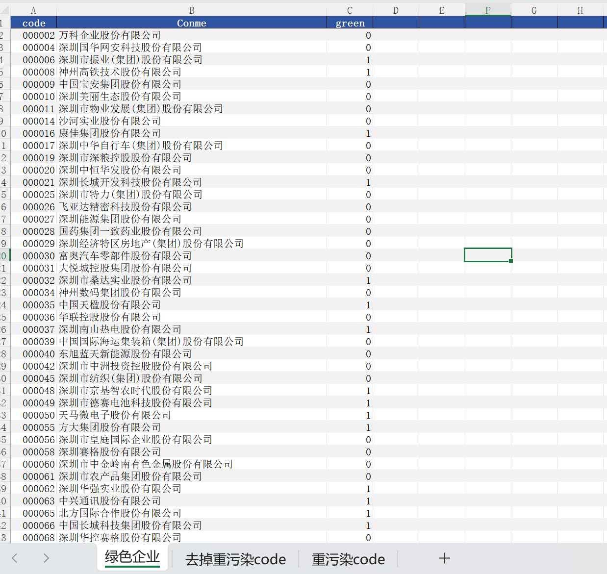 企业创新与绿色发展关联性研究:探讨绿色上市公司的创新能力与绿色发展之间的关系,分析创新对企业环保技术应用和竞争优势的影响。综上所述,利用绿色上市公司识别数据,可以深入研究绿色经济发展、环保技术创新、绿色金融市场、企业社会责任等方面的问题,为促进绿色经济的发展和可持续发展提供理论支持和政策建议。
