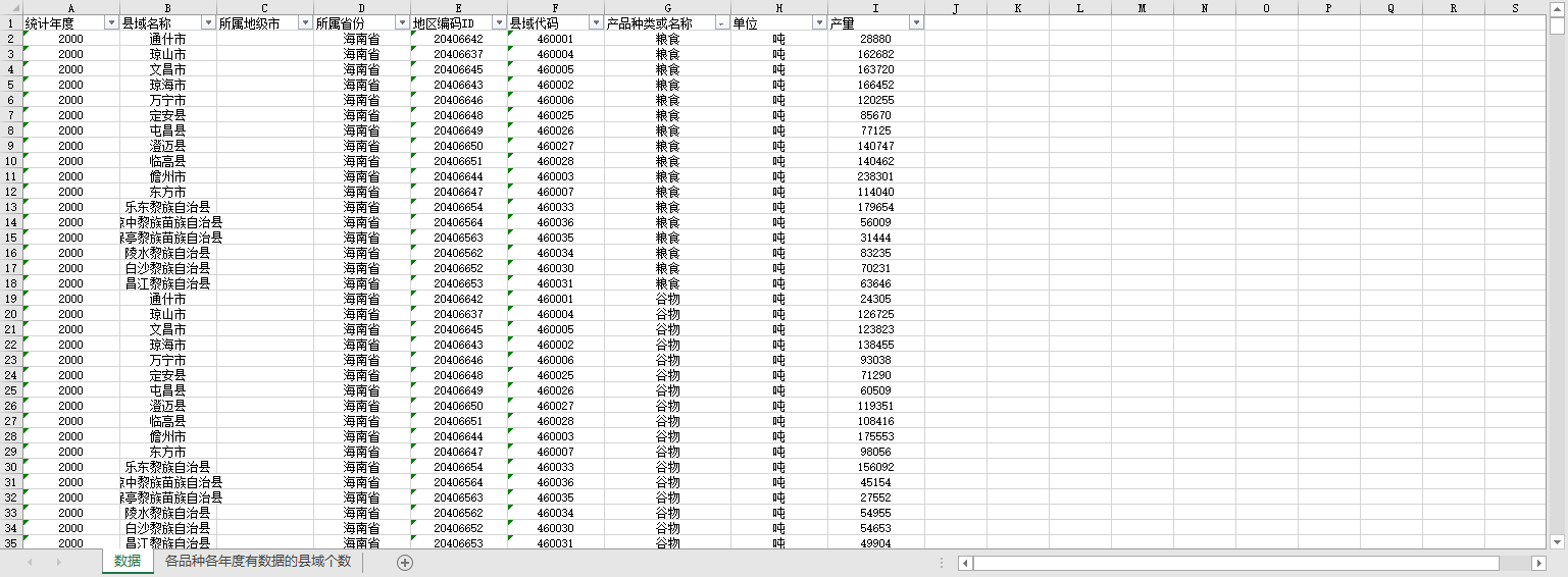 海南省各区县域农产品产量2000-2022.xlsx