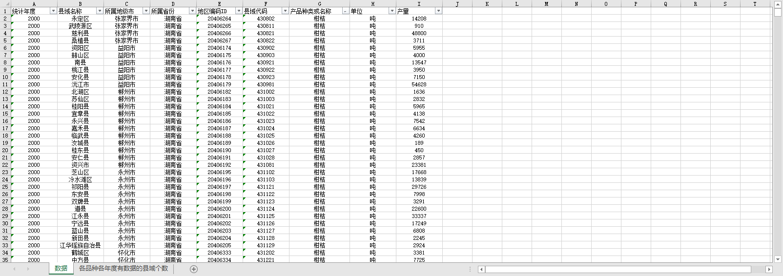 湖南省各区县域农产品产量2000-2022.xlsx