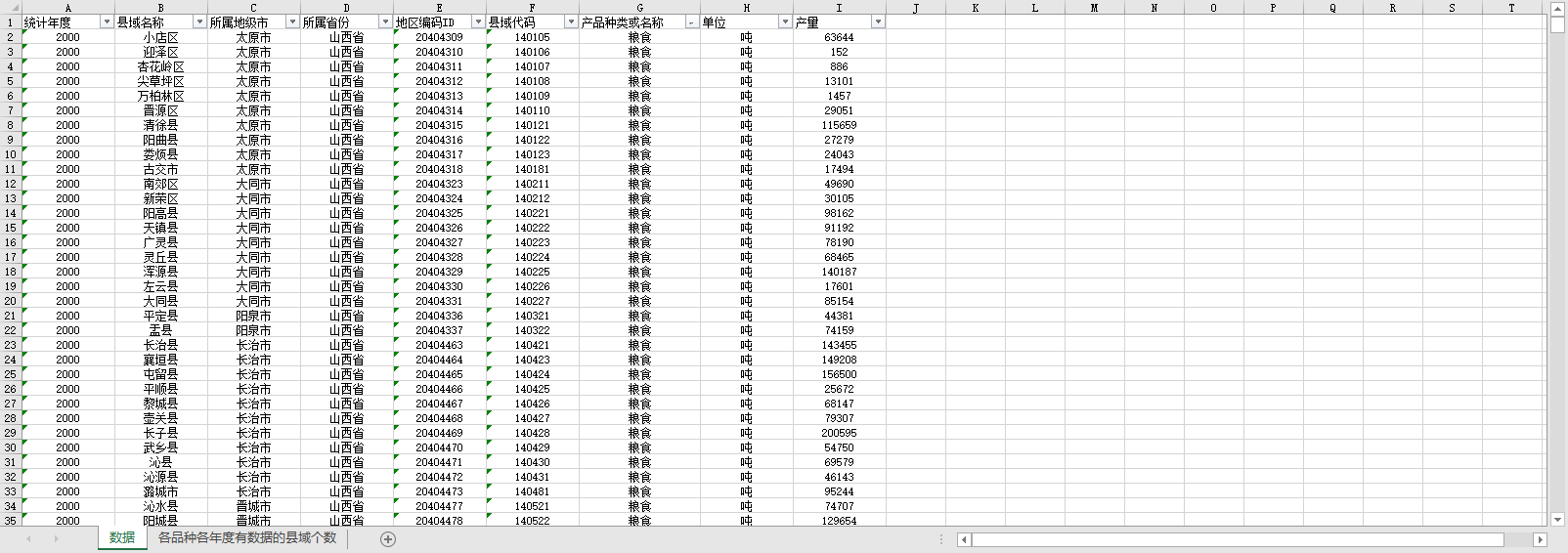 山西省各区县域农产品产量2000-2022.xlsx