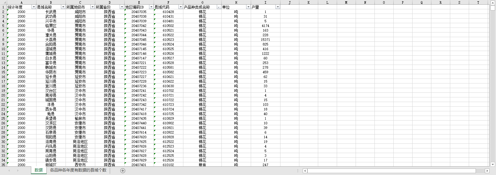 陕西省各区县域农产品产量2000-2022葵花籽粮食棉花苹果蔬菜水果油料