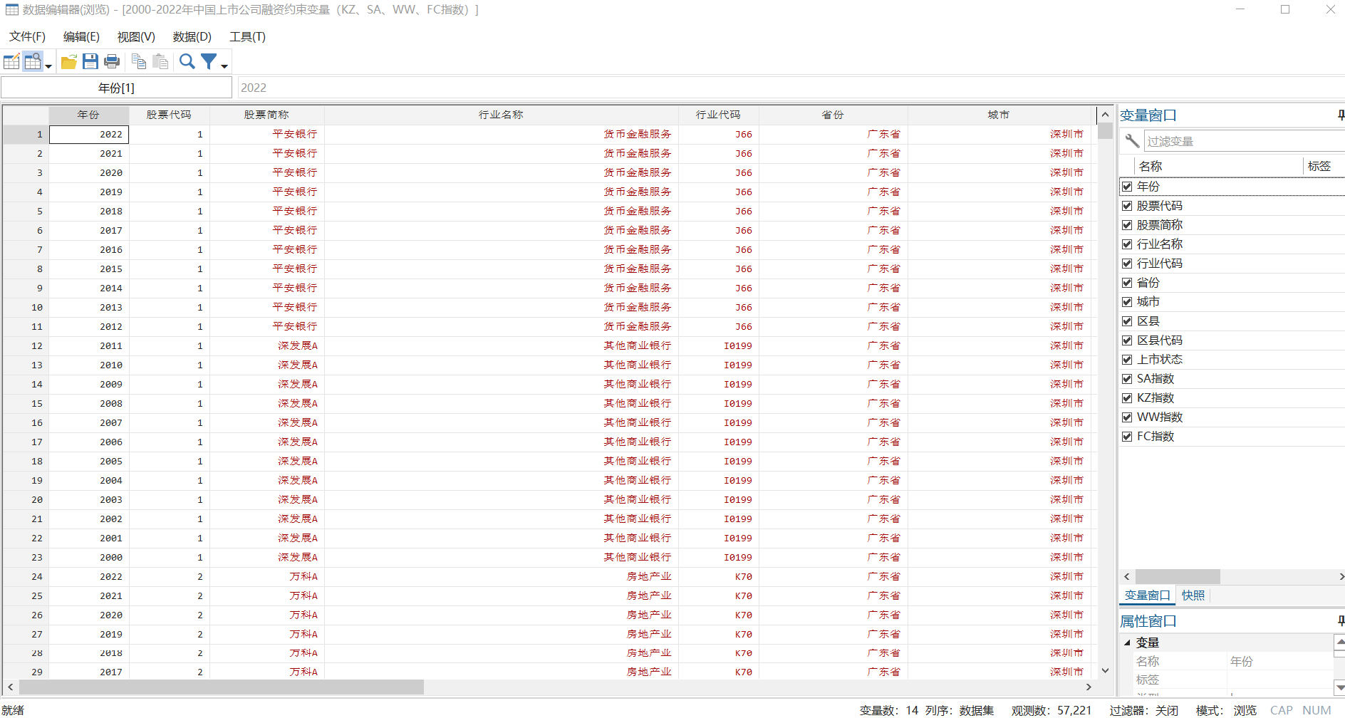 2000-2022年中国上市公司融资约束变量(KZ、SA、WW、FC指数).dta