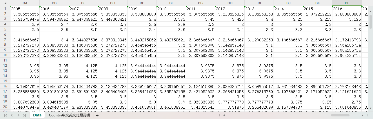 (国家、指标翻译成了中文,还有国家中英文说明等相关的对照表页签,方便使用)